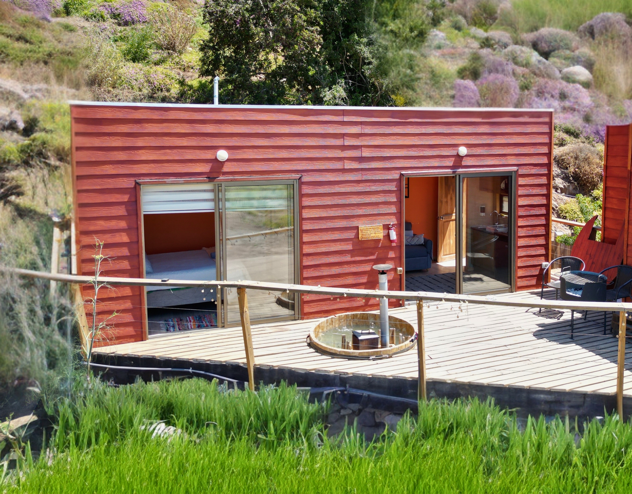 Disfruta de una estancia inolvidable en nuestra cabaña con tinaja privada, perfecta para un máximo de 4 personas. Ubicada en nuestro encantador lodge a orillas del río Maipo, te brindará un ambiente acogedor y relajante en medio de la naturaleza.